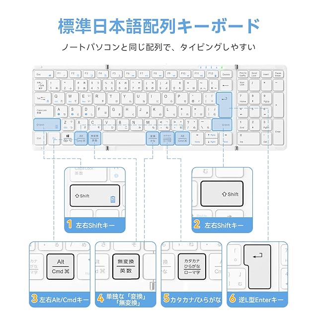 商品名:【最新型】Omikamo キーボード Bluetooth 折り畳み ワイヤレス テンキー付き L型Enterキー ipadキーボード 日本語配列 フルサイズ マルチペアリング iOS/Windows/Mac/Google対応 Type-C充電式 パンタグラフ コンパクト 無線 薄型 軽量 高級 (白)