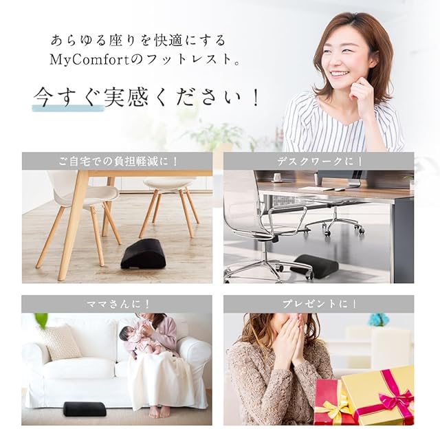 【使い分けられる4つのパターン】一般的な フットレスト ( 足置き )としてだけでなく、裏面に足を乗せ、適度なバランス感を保ちながら使用することで更なる美姿勢に向けたアプローチも可能。また、リラックスタイムのお供に膝下に置くことで 膝枕 としてもお使い頂けます。様々な使い方ができる MyComfort のプレミアム フットレスト で至福のリラックスタイムを取り入れてみませんか。