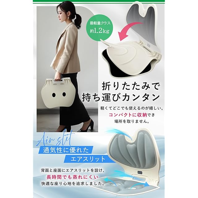 ✅【S字カーブで美姿勢を作る】人間工学に基づいた「S字カーブ」で体を優しくサポート。背筋が「ピン!」と伸び、美姿勢をキープします。
