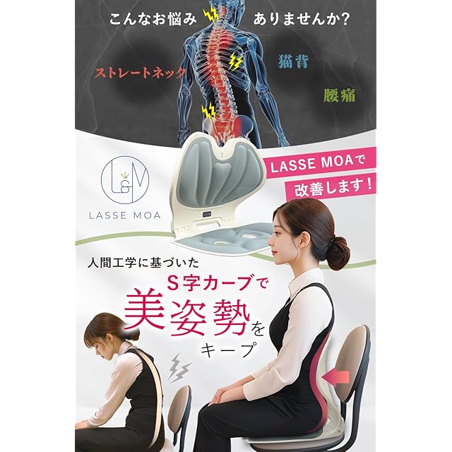 【Tarzan掲載x柔道整復師監修】 姿勢サポートチェア 姿勢矯正 骨盤矯正 椅子 腰痛 姿勢改善 座椅子 腰痛改善 姿勢サポート LASSE MOA『折りたたみ式で持ち運びカンタン』 (ベージュ)