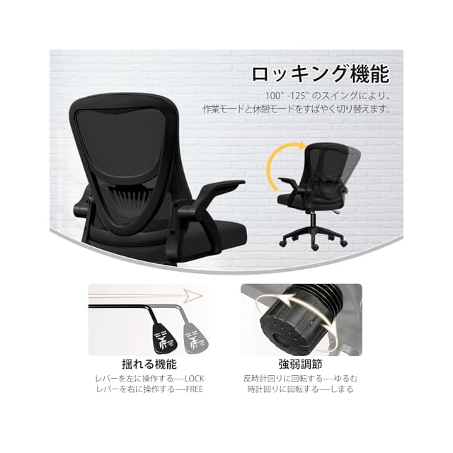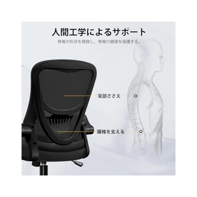 商品名:[EdoErgo] オフィスチェア 椅子 テレワーク 疲れない 跳ね上げ式アームレスト コンパクト 約105度ロッキング pc 事務椅子 360度回転 座面昇降 強化ナイロン樹脂ベース 通気性メッシュ 在宅ワーク H-WY01 (黒網+黒枠+黒足)