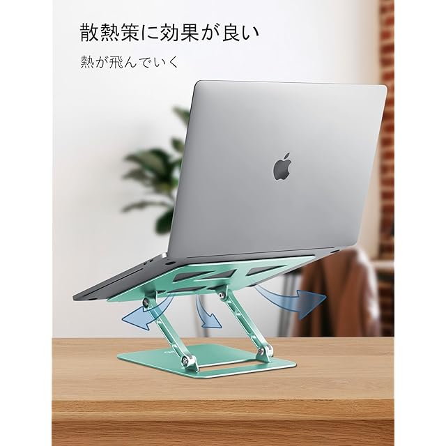 アオビホ(Aoviho)-ノートパソコンスタンド- ホルダー PC 折りたたみ式 人間工学 無段階高さ&角度調整可能 姿勢改善 腰痛&猫背&肩こり解消 滑り止め 在宅仕事 つくえ 机 省スペース アルミ製軽量 ZOOM会議 Macbook Air,Macbook Pro,iPad,15.6インチまでのノートパソコンやタブレットに対応 (薄荷色(はっかいろ))