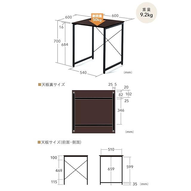 【製品サイズ】約W600×D600×H700mm・約9.2kg【耐荷重】50kg【梱包サイズ】約W760×D660×H91mm・10.3kg【出荷形態】ノックダウン組み立て式(お客様組立)【材質】天板/木製(メラミン化粧板)、フレーム/スチール(エポキシ粉体塗装)【生産地】中国【取扱説明書】あり【期間】初期不良のみ