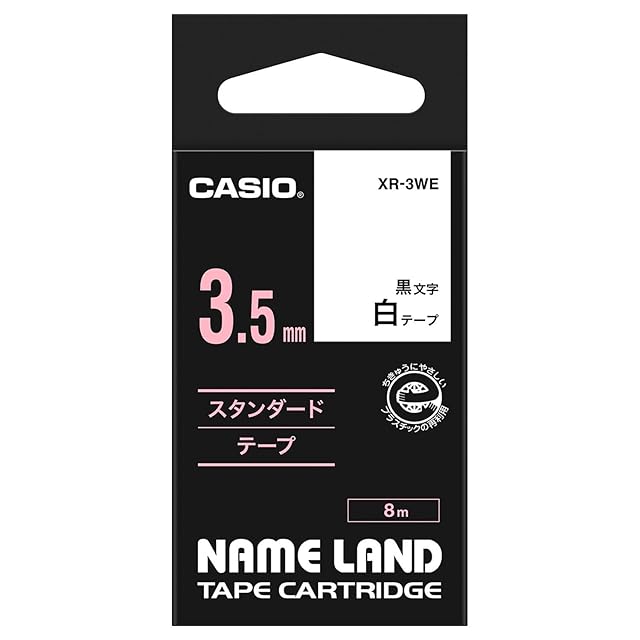 純正 カシオ ラベルライター ネームランド テープ 3.5mm XR-3WE 白地に黒文字