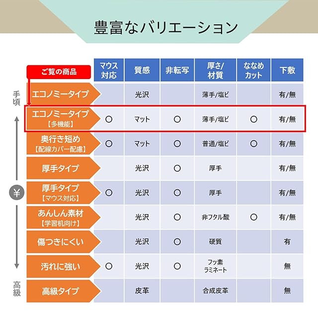 環境に配慮し再生材を使用したデスクマット。エコノミータイプ。マウス対応。