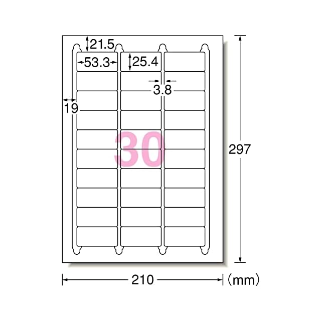 シートサイズ:A4判(210mm×297mm)/ラベルサイズ:53.3mm×25.4mm(3列×10段)