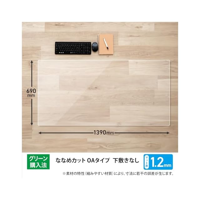 商品名:プラス デスクマット マウス対応 エコノミータイプ サイズ 多数 マット めくれにくい インクが移りにくい 1.2㎜厚 薄手 1390×690㎜ 透明 DM-147ES 41-010