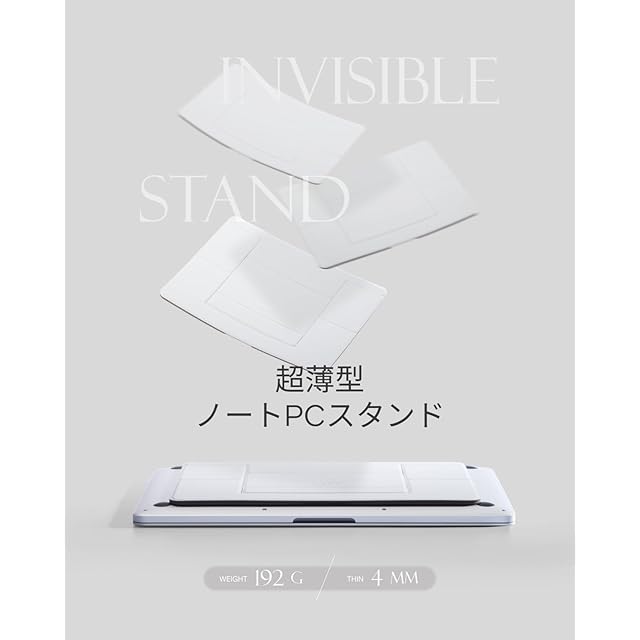 『軽くてスリム、持ち運び便利』このノートpcスタンドは紙のように薄く、コインのように軽く、重さ192g、厚さ4mmの超軽量設計でカバンに入れてもかさばらず、まるで持ち歩いていないかのような感覚です。会社や在宅でデスクワークをしても、外出先での作業も、快適にこなせます。あなたのワークスタイルをもっと自由に、もっと身軽に。