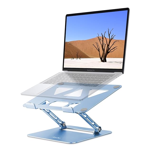 アオビホ(Aoviho)-ノートパソコンスタンド- ホルダー PC 折りたたみ式 人間工学 無段階高さ&角度調整可能 姿勢改善 腰痛&猫背&肩こり解消 滑り止め 在宅仕事 つくえ 机 省スペース アルミ製軽量 ZOOM会議 Macbook Air,Macbook Pro,iPad,15.6インチまでのノートパソコンやタブレットに対応 (ダイヤモンド ブルー)