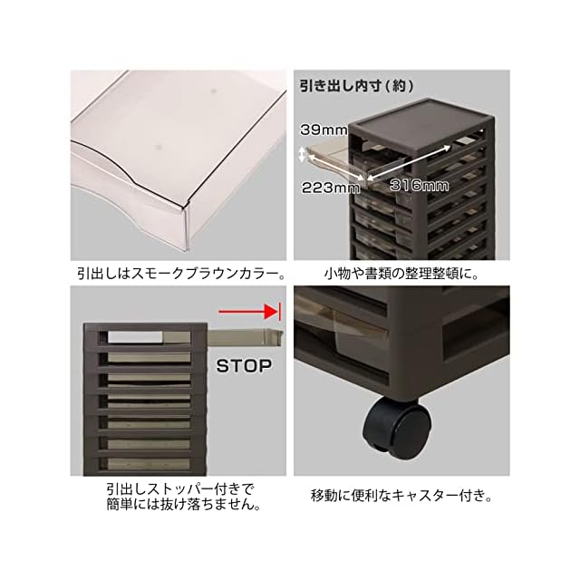 A4用紙の整理に最適 リビングやデスク周りの小物収納に最適です キャスター付きで移動がラクラクできます スモークの引出しで適度に見えて確認ができます