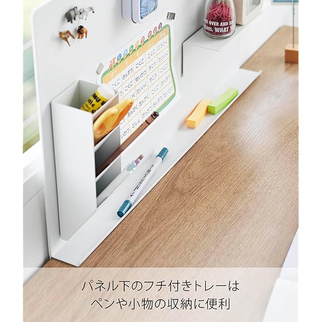 山崎実業(Yamazaki) デスク横 トレー付き スチールパネル ホワイト W58×D4.8×H41.7~45.5cm タワー tower パーテーション スチールボード 10066