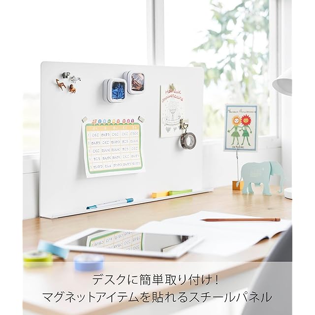 デスクに調節ネジで簡単取り付け!マグネットアイテムやツールを自由にカスタマイズできる便利なスチールパネルです。別売のマグネットアイテムやツールをお好みの位置に取り付けて、自分だけのオリジナル収納がつくれます。フチ付きのトレーにはペンや小物が収納できて便利。デスクのサイドに取り付ければパーテーションとしても使用できます。