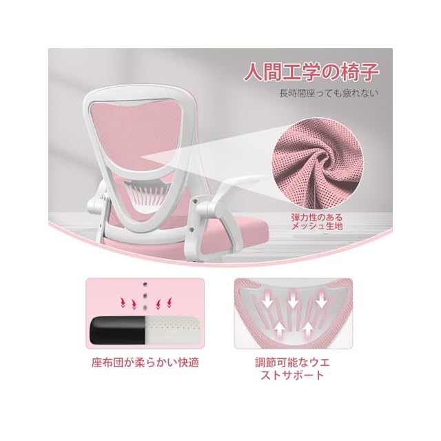商品名:[EdoErgo] オフィスチェア 椅子 テレワーク 疲れない 跳ね上げ式アームレスト コンパクト 約105度ロッキング pc 事務椅子 360度回転 座面昇降 強化ナイロン樹脂ベース 通気性メッシュ 在宅ワーク H-WY01 (粉網+白枠+白足)
