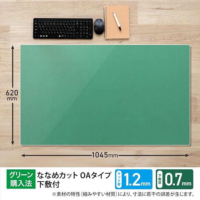 環境に配慮し再生材を使用したデスクマット / エコノミータイプ / マウス対応 / グリーンの下敷付き