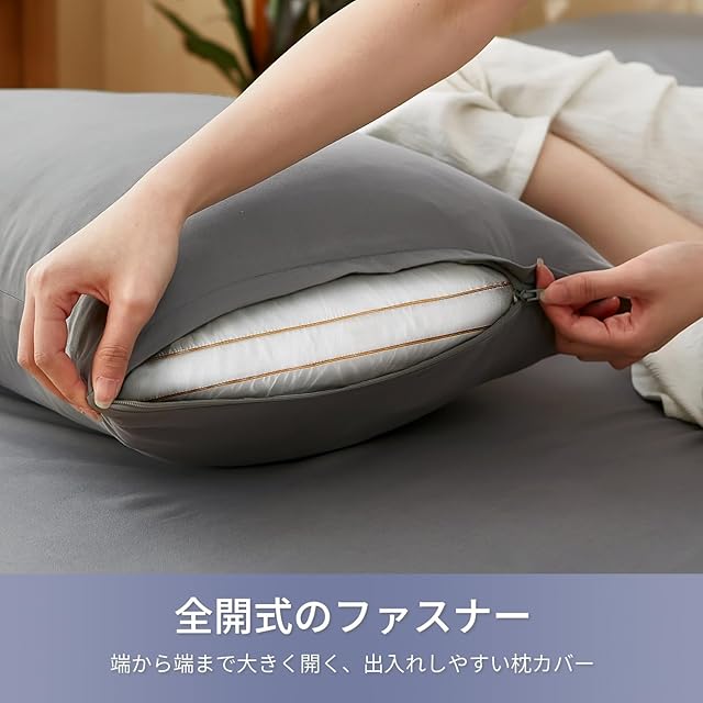 AZRA 枕カバー 2枚セット 43 63 ピローケース ピーチスキン加工 ファスナー式 チャック付き おしゃれ オールシーズン 通気 速乾 グレー