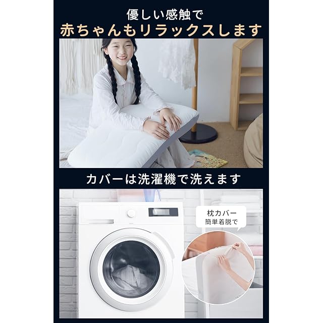 【枕カバーが付属】取り外し可能な枕カバーが付属しており、ファスナー仕様で簡単に取り外して洗濯できます。清潔な状態を保つことで、快適な睡眠環境を提供します。※枕本体は洗濯不可。陰干しをオススメいたします。