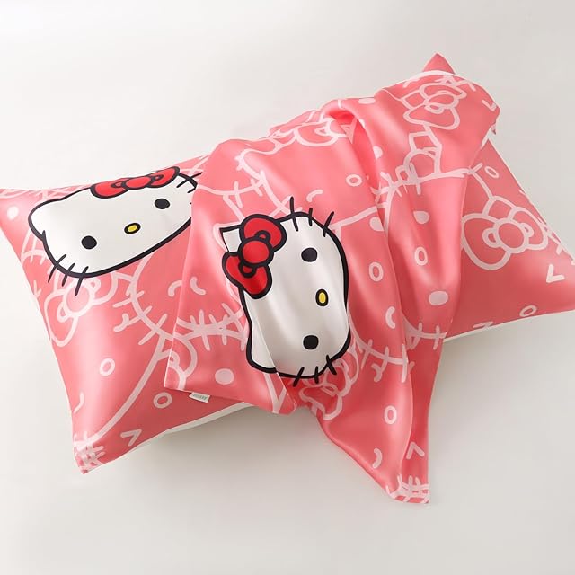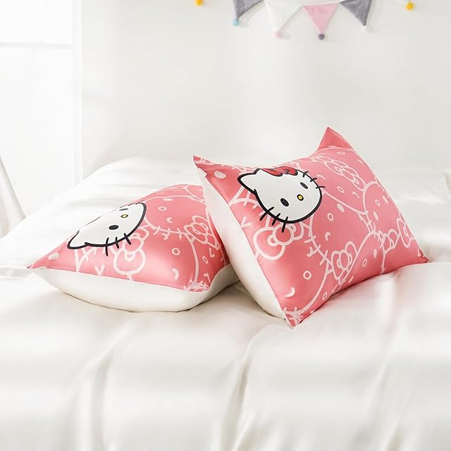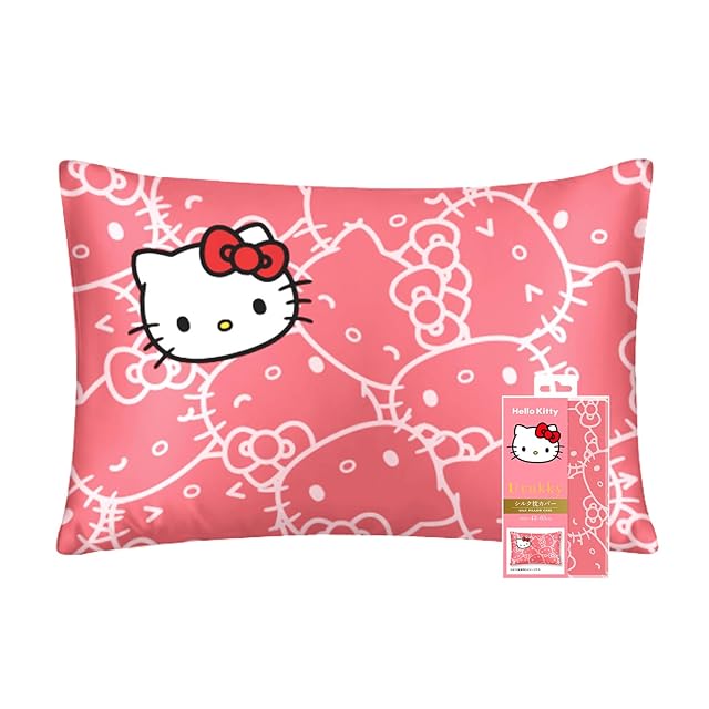 Utukky シルク枕カバー サンリオキャラクターズ ハローキティ 枕カバー 43×63cm 片面100%シルク 封筒式まくらカバー すべすべ 光沢感 洗える 四季適応 可愛い サンリオキャラクターズ 枕カバー 1枚入り
