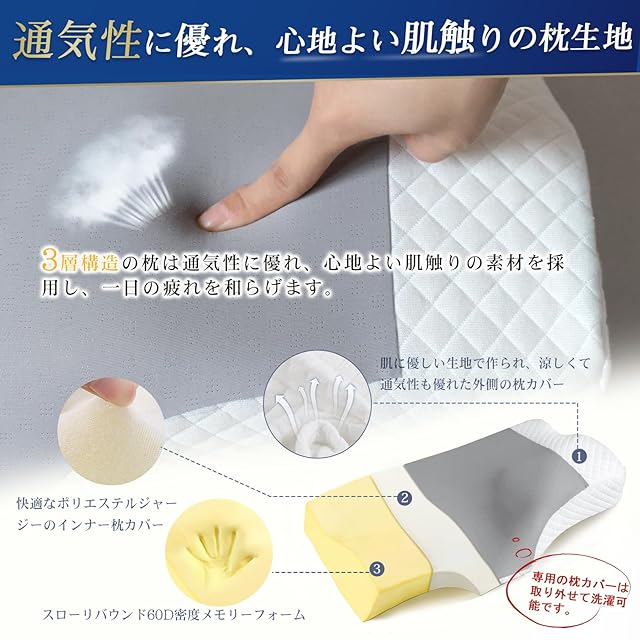 【洗濯可能の枕カバー】外側の枕カバーは肌に優しい生地で作られ、涼しくて通気性も優れて、最高の寝心地を実現します。一年中快適に使えて、もちろん洗濯機で簡単にお手入れ可能です。