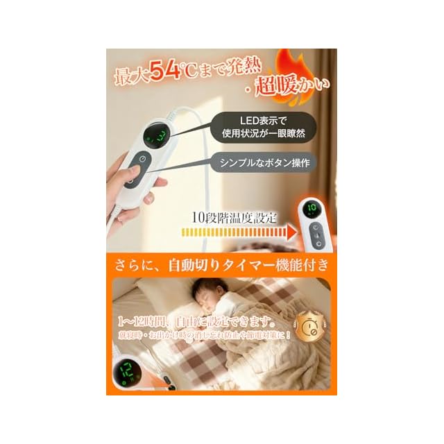 【安全性パッチリ!AI過熱保護&タイマー付き】温度センサーを内蔵し、リアルタイムで温度を検知し、AIが温度をコントロールして維持してくれます。過熱を防ぎ、安全性パッチリ!!また、この電気毛布 タイマー付き 、1-12Hの範囲で1時間単位で自由に設定できます。寝ている間に熱くなりすぎる心配もなく、快適な睡眠をとることができます。電気毛布の消し忘れや電気代の節約にも役立ちます。