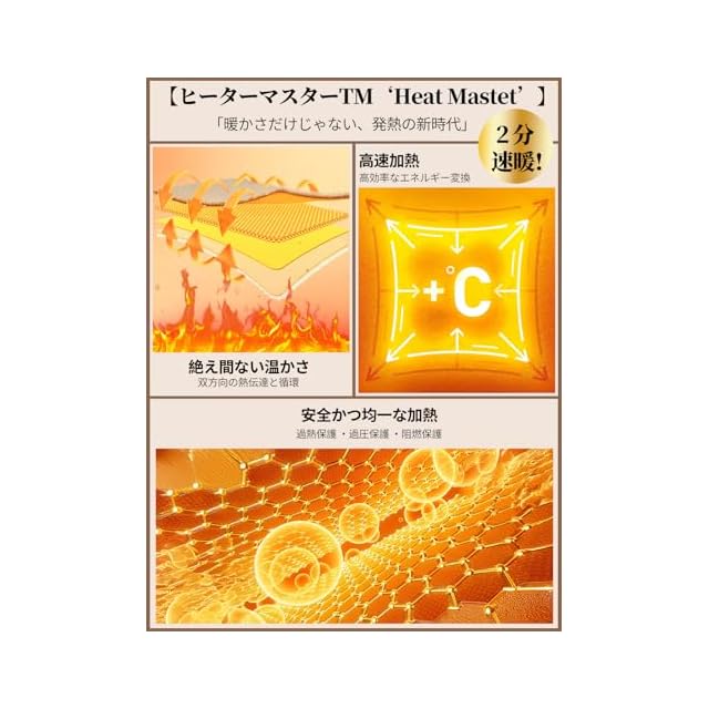 『安全性へのこだわり・何よりも安全性を第一に!厳しい寒さの中でも、品質と手頃さを兼ね備えた安らぎの生活を。』①電気毛布部分は洗たく機で丸洗える可能、清潔さを保つのが簡単。②抗菌防臭加工を施し、高温設定時にはダニ退治も可能で清潔感にこだわる方にも最適。③タイマーは自動OFFが基本。消し忘れの心配がなく、デフォルト3Hで使用と節電にも安心。④PTCパッシブ温度制御、過圧保護、阻燃保護、均一加熱により安心して心地よい睡眠をサポート。⑤電気ひざ掛けは静電気防止対策を強化。パチパチしない使い心地で、冬の快適さをアップ、寒い冬の重宝。⑥特殊配線設計により、電磁波を大幅低減。体に優しい環境をつくり出します。⑦PSE認証取得済み。日本の安全基準に合わせて特別設計された電気掛敷毛布、秋冬必須の贅沢な逸品