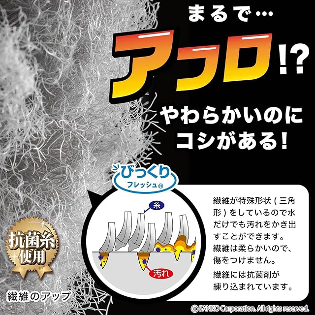 【びっくりフレッシュ(R)】水だけでも汚れが落ちる環境にやさしい商品です。洗剤を使用する場合でもごく少量で汚れが落とせます。