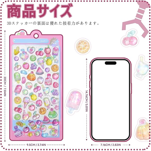 シール 可愛い 3d立体ごほうびシール 女の子 キラキラ ステッカー 手帳用 diy用 水筒用 携帯電話飾り用 手芸用品 贈り物(果物)
