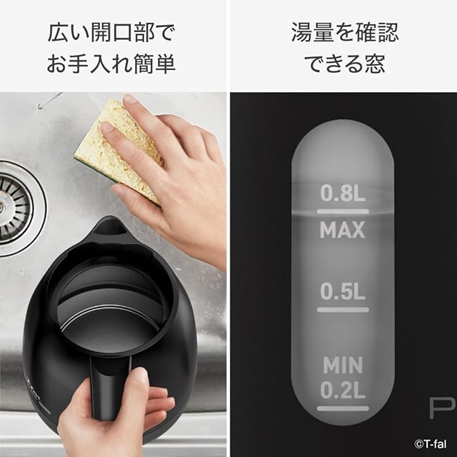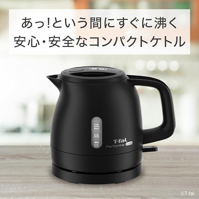 【オンライン限定】ティファール 電気ケトル 0.8L シンプル 転倒お湯もれロック 省スチーム設計 「パフォーマ ロック ブラック」 軽量コンパクト KO1618JP