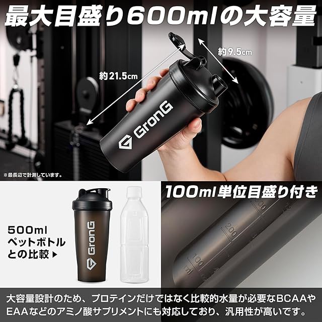 グロング プロテインシェイカー 600ml シェイカー プロテイン シェーカー シェイカーボトル ホワイト 2個セット