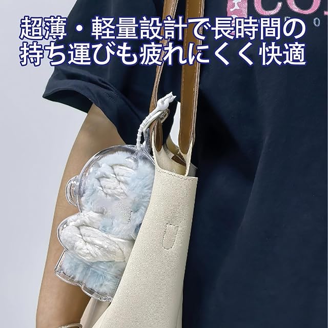 ❸【超軽量&持ち運び便利】 上部にストラップ通し穴があり、バッグやキャリーケースに固定して旅行やイベントにぬいぐるみを連れていけます。超薄型・超軽量設計で、長時間手に持っても疲れにくく、持ち運びもラクラク。