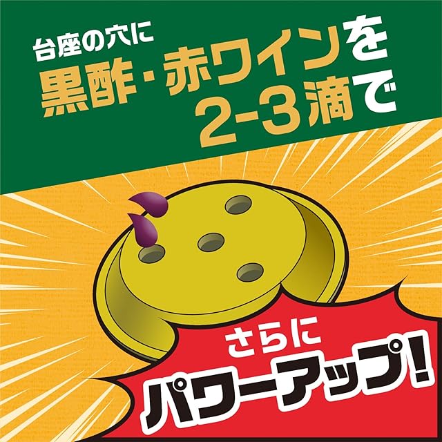 台座の穴に黒酢・赤ワインなどを2滴から3滴入れると、さらにぐんぐんとれます。