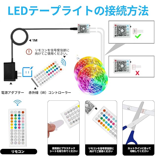 【簡単取り付け!自由にカットできるLEDテープライト】工具不要、賃貸でも自分だけの空間演出が可能。自由にカットして、曲げて、場所や用途にぴったり合わせられるLEDテープライト。強力な両面テープで簡単に取り付け可能、さらに剥がしても跡が残らないので、賃貸のお部屋にも最適です!1ユニット(LED8個)ごとに自由にカット✂でき、工具不要で取り付け簡単、誰でも手軽にカスタマイズできます。細かい演出にもぴったりです。【ご注意】カットライン以外を切断すると点灯しなくなりますので、切断時はカットラインに沿って切断してください。