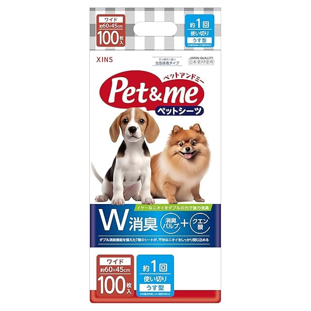 ペットアンドミー Pet&me ペットシーツ うす型 薄型 1回使い切りタイプ ワイドサイズ 45×60cm 100枚入り