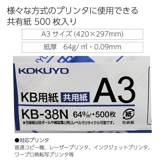 コクヨ(KOKUYO) コピー用紙 A3 紙厚0.09mm 500枚 FSC認証 KB-38N