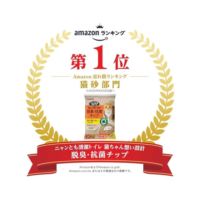 商品名:ニャンとも清潔トイレ 猫砂 [天然素材でパワフルに脱臭] 脱臭・抗菌チップ 小さめの粒 4.4L システムトイレ 猫用 消臭 ネコ砂