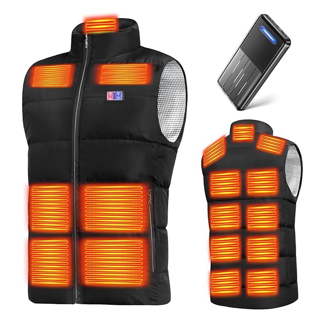 [Yoigood] 電熱ベスト 【40800mAh大容量バッテリー付き 17箇所発熱】 加熱ベスト 前後独立スイッチ 3段階温度調節 USB給電 ヒートジャケット 速暖 保温 メンズ レディース 加熱服 暖房ウェア 丸洗い 省エネ 通勤 通学 防寒対策 (JP, アルファベット, M, ブラック)