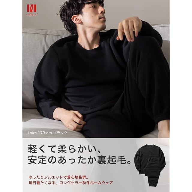 商品名:[Nutopia] スウェット メンズ 裏起毛 上下セット パジャマ 秋冬 (M/ブラック(上下セット×1点))