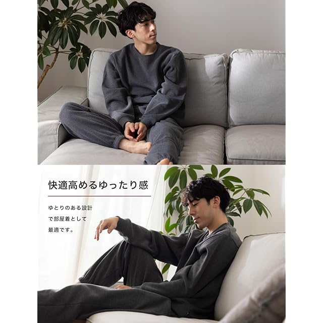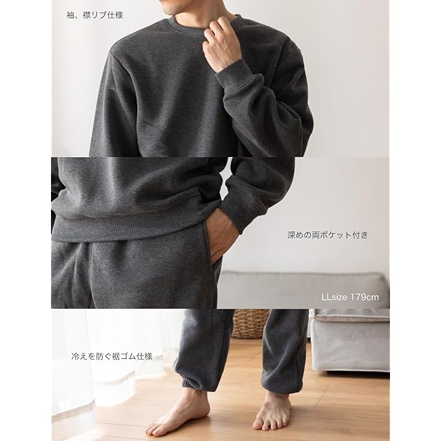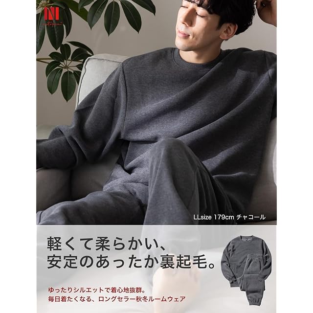 [Nutopia] スウェット メンズ 裏起毛 上下セット パジャマ 秋冬 (S/チャコール(上下セット×1点))