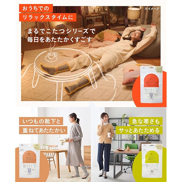 【夏場の冷房対策、冬の底冷え対策に】オフィスでのデスクワーク、テレワーク、立ち仕事、冷えたフローリングでの家事の最中など、足元が冷えやすい場面で大活躍。ふくらはぎから足先まであったか素材が包んでくれるので、寒がりさんにオススメ。