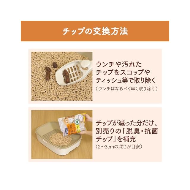 商品名:ニャンとも清潔トイレ 猫砂 [天然素材でパワフルに脱臭] 脱臭・抗菌チップ 大きめの粒 4.4L システムトイレ 猫用 消臭 ネコ砂
