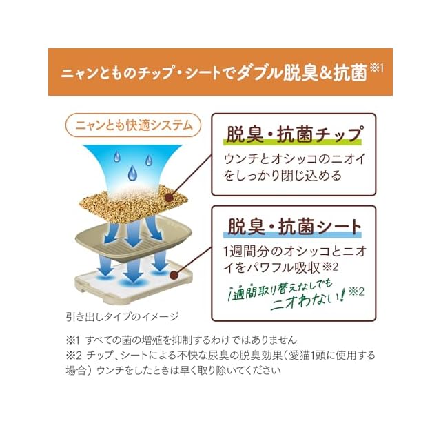 【1週間取り替えなしでもニオわない! 】ニャンとも清潔トイレ専用のチップとシートでダブル脱臭&抗菌※すべての菌の増殖を抑制するわけではありません