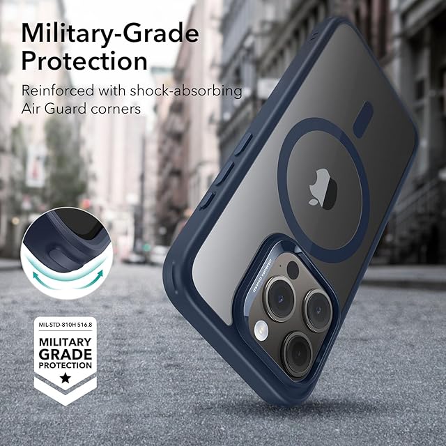 【米軍MIL規格・Magsafe対応】ESR iPhone 15 Pro ケース ワイヤレス充電対応 耐衝撃 いphone 15 pro ケース 傷防止 黄変防止 iPhone 15 Pro用 ケース アイフォン 15 プロ対応 磁気 スマホケース Classicシリーズ(クリア_ブルー)