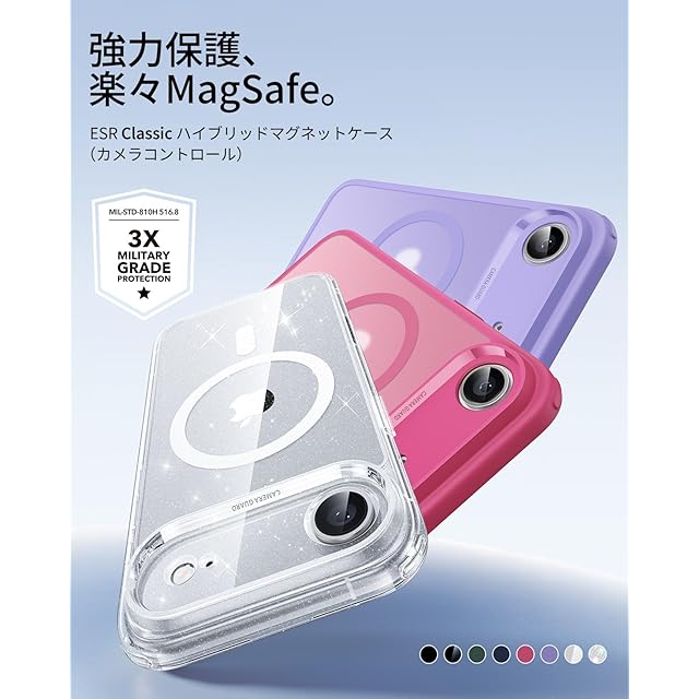 商品名:【3倍米軍MIL規格・MagSafe対応】ESR iPhone Air ケース 極薄 ワイヤレス充電 ストラップホール付き エアガードコーナー 25W高速充電 Qi2.2対応 4H傷に強い背面 傷防止 滑り止め 指紋防止 耐衝撃 耐黄変 マグネットスマホケース iphone airケース カメラコントロールPhoneair 用 Classicシリーズ フロストパープル