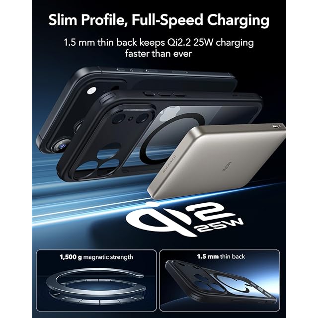 【ズレない・外れない!最強マグネット〈1,500gの保持力〉】 業界トップクラスの強力磁力(1,500gの保持力)を内蔵した いphone17promaxケースです!MagSafeワイヤレス充電器やアクセサリーが瞬時に「ピタッ」と吸着するため、満員電車や急いでいる時でも位置調整の手間が不要です。充電中のずれ落ちやアクセサリーの外れが心配ない設計で、移動中やアウトドアでの利便性が格段に向上します