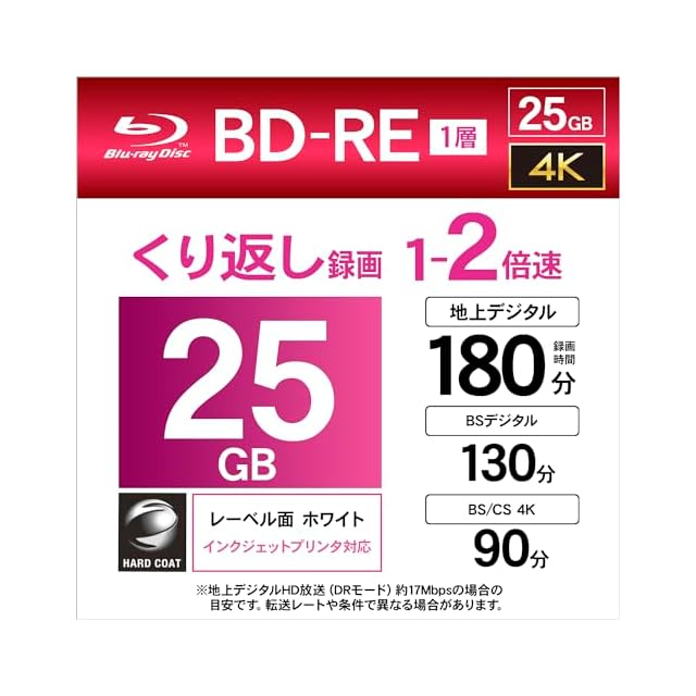 録画時間:地デジ 180分 / BSデジタル130分 / BS/CS 4K 90分
