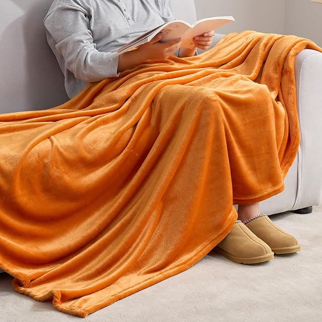 Hansleep 毛布 シングル 冬用 ブランケット 100x140cm オレンジ マイクロファイバー 柔らかく肌触り フランネル 洗える 静電防止 四季適用 (100x140,オレンジ)