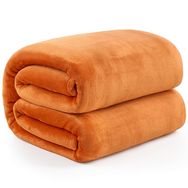 Hansleep 毛布 シングル 冬用 ブランケット 130x165cm マイクロファイバー 柔らかく肌触り フランネル 洗える 静電防止 四季適用 (130x165,オレンジ)