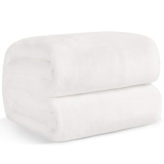 Hansleep 毛布 冬用 シングル 白 ブランケット 140x200cm マイクロファイバー 柔らかく肌触り フランネル 洗える 軽量 静電防止 四季適用 (140x200,ホワイト)