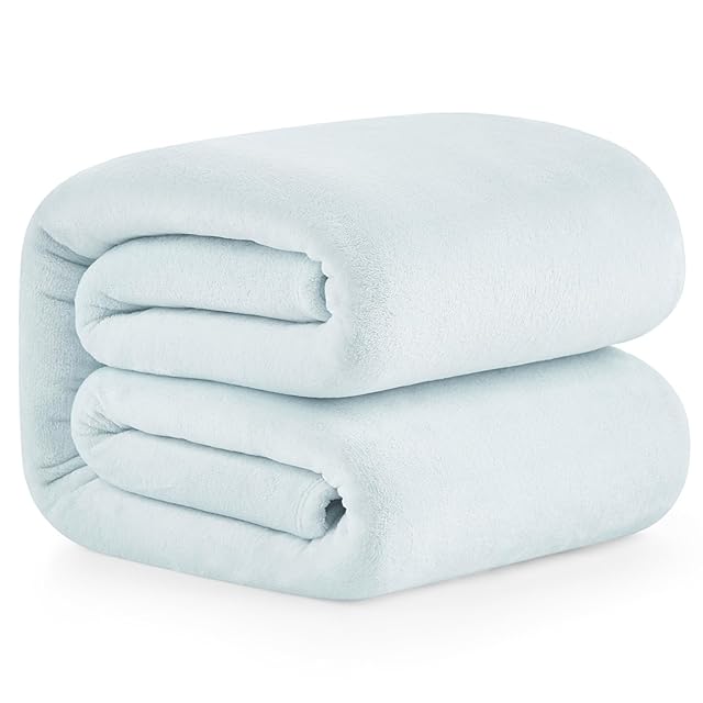 Hansleep 毛布 シングル 冬用 ブランケット 130x165cm マイクロファイバー 柔らかく肌触り フランネル 洗える 静電防止 四季適用 (130x165,アイスブルー)