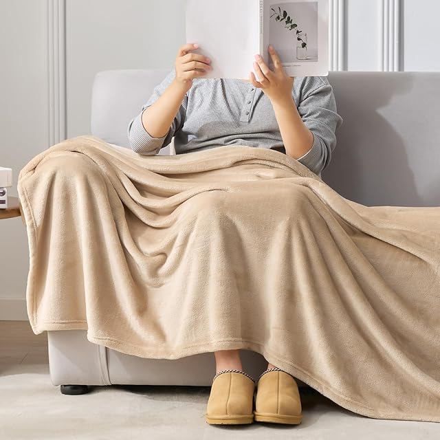 Hansleep 毛布 シングル 冬用 ブランケット 140x200cm ライトベージュ マイクロファイバー 柔らかく肌触り フランネル 洗える 静電防止 四季適用 (140x200,ライトベージュ)