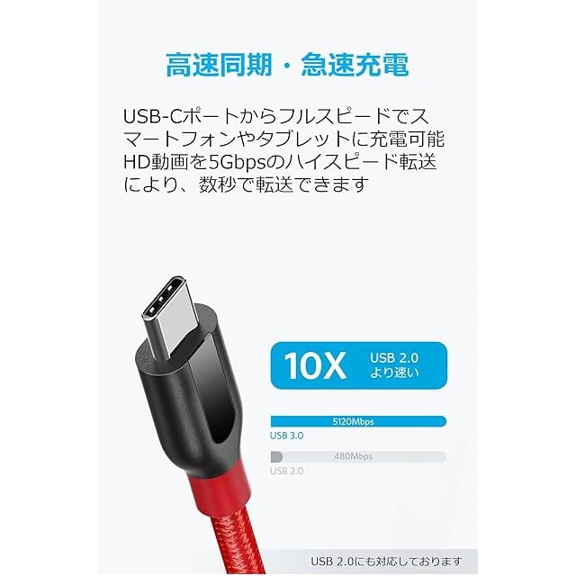 高速充電・同期:USB-Cポートからフルスピードでスマートフォンやタブレットに充電可能。HD映画を5Gbpsのハイスピード転送により、数秒で転送できます。